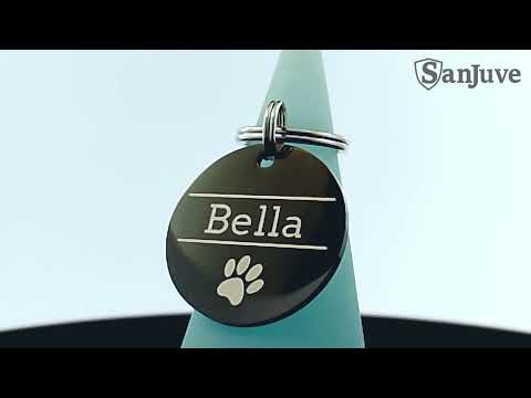Hundemarke schwarz mit Gravur - Personalisiert mit Name - Durchmesser 25mm oder 30mm - Edelstahl Anhänger für Halsband als Tiermarke für Hunde und Katzen.