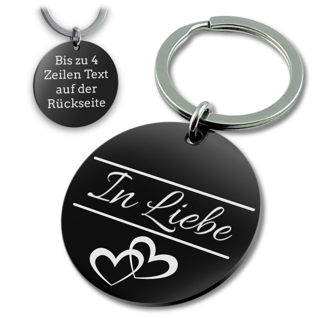 Edelstahl Schlüsselanhänger mit Gravur - 30 mm Durchmesser - Runder Anhänger schwarz - Mit Motiv und Text - Liebe & Verbundenheit
