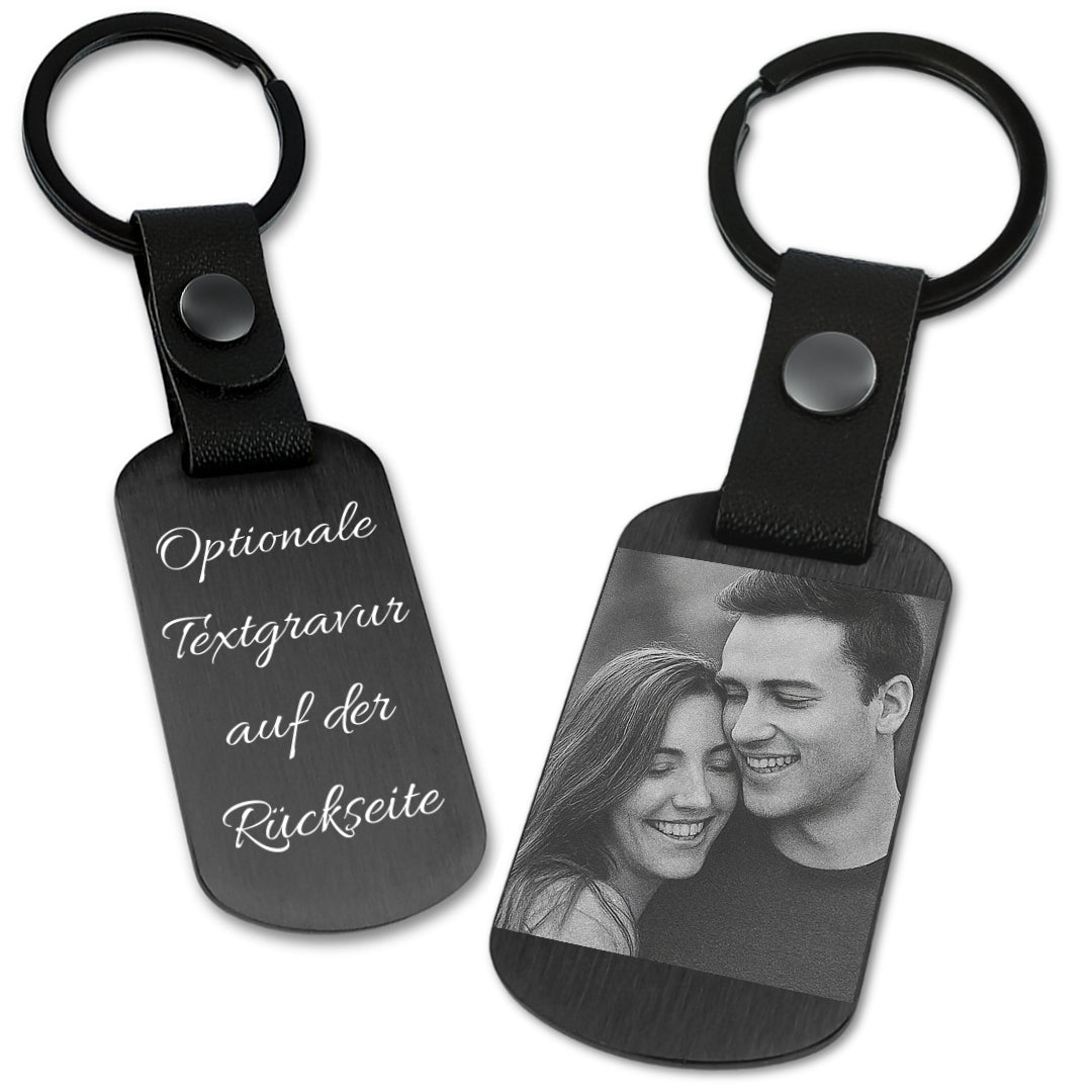 Schlüsselanhänger mit Fotogravur Schwarz Edelstahl – Personalisierbar mit Foto & Wunschtext