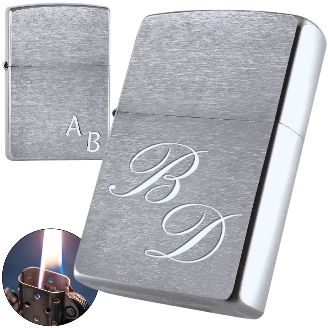Zippo® Feuerzeug Chrome Brushed mit Initialen Gravur